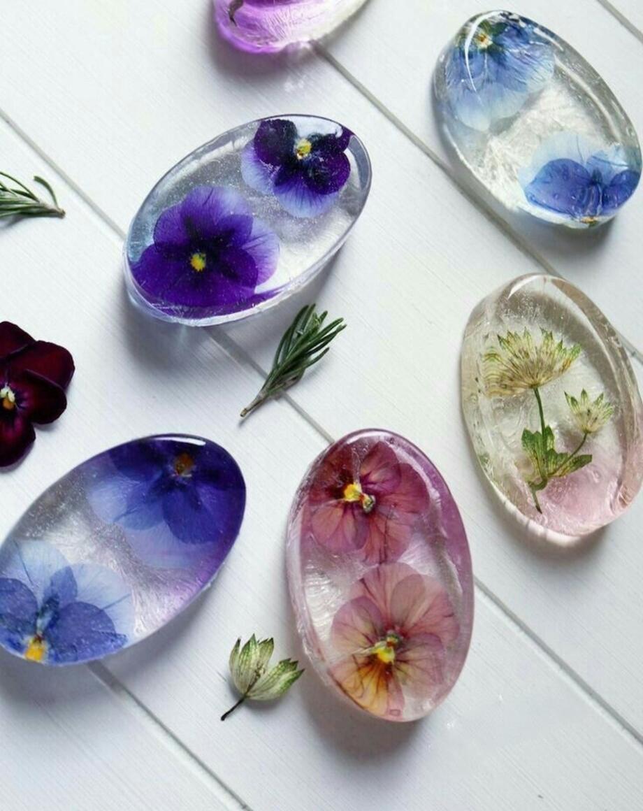 Прозрачное мыло ручной работы с настоящими цветами внутри.